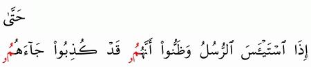 سورة يوسف ح ت ى إ ذ ا اس ت ي أ س الر س ل و ظ ن وا أ ن ه م