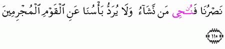 فى واحة القرآن والسنة قال ابن كثير في تفسيره قول الله تعالى ح ت ى إ ذ ا اس ت ي أ س الر س ل و ظ ن وا أ ن ه م ق د ك ذ ب وا ج اء ه م ن ص ر ن ا ف ن ج ي م ن ن ش اء و ل ا ي ر د ب أ س ن ا ع ن ال ق و م ال م ج ر م ين