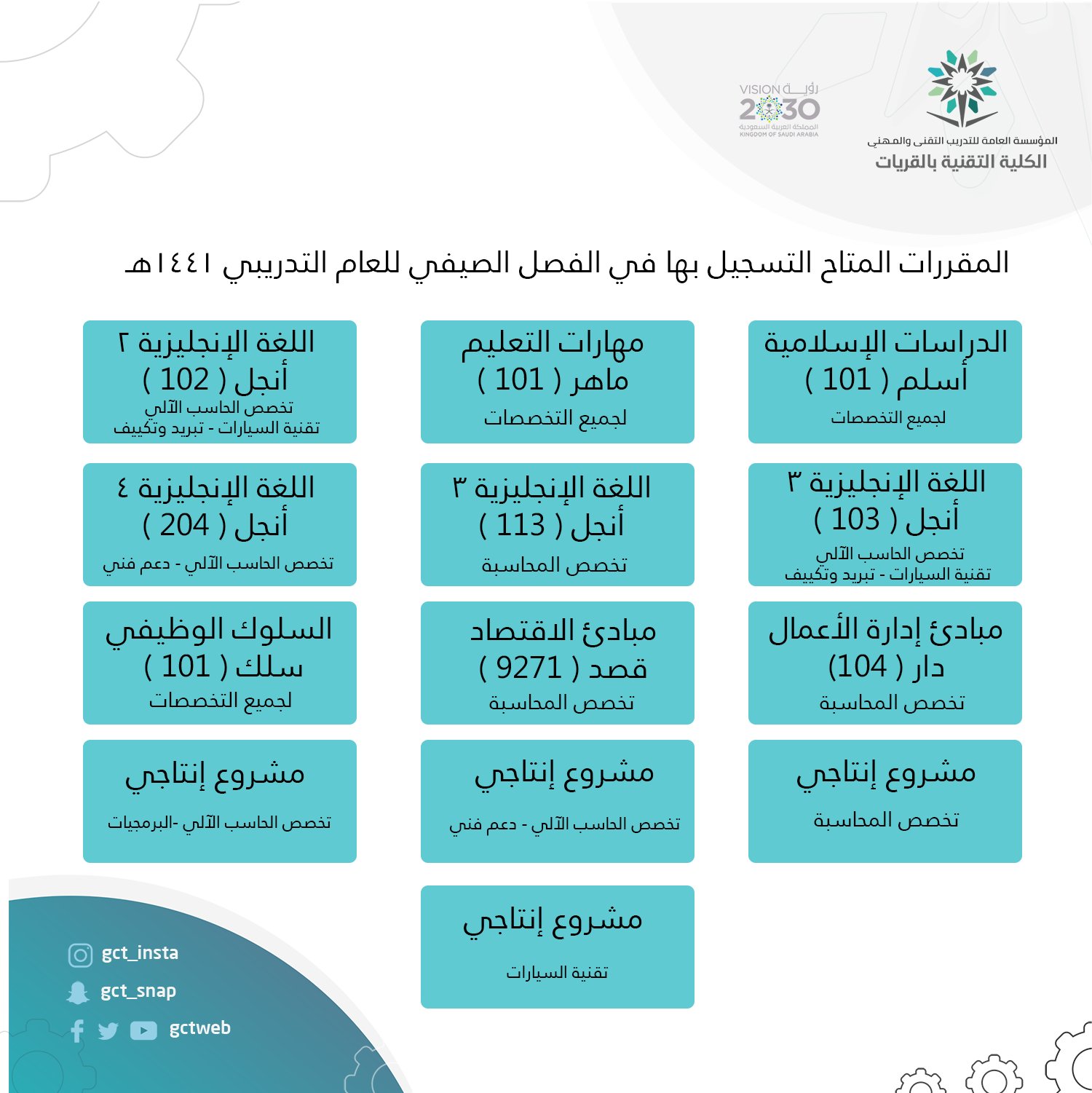 الكلية التقنية للبنين بالقريات A Twitter المقررات المتاح التسجيل بها في الفصل الصيفي للعام التدريبي 1441هـ بـ تقنية القريات نعود بحذر الفصل الصيفي السعودية التدريب التقني Https T Co N2d47zhgw3