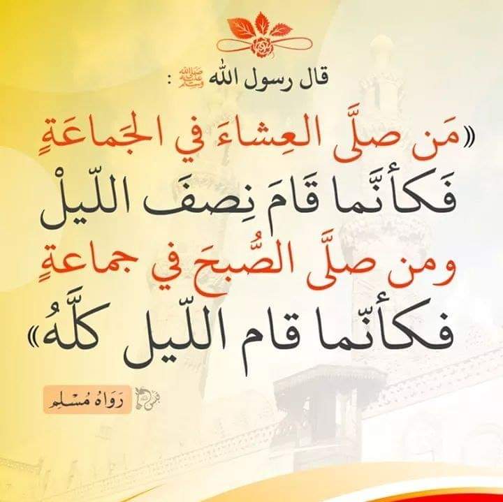 د ماهر سالم Auf Twitter قال رسول الله صلى الله عليه وسلم من صلى العشاء في الجماعة فكأنما قام نصف الليل ومن صلى الصبح في جماعة فكأنما قام الليل كله رواه مسلم