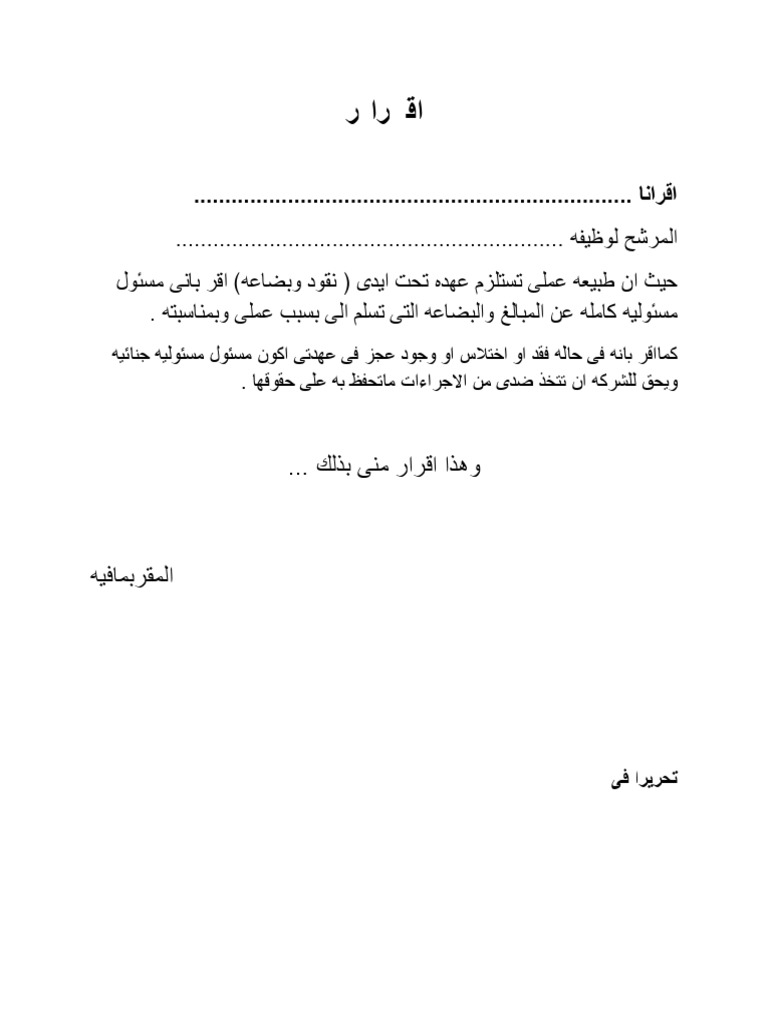 نموذج اقرار استلام عهدة موظف Doc محضر جاهز للتعديل
