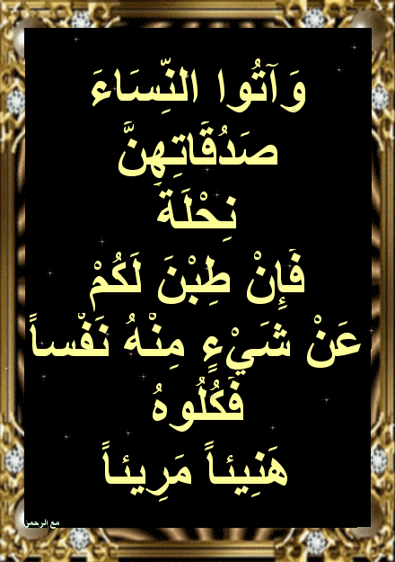 هشام On Twitter وآتوا النساء صدقاتهن نحلة فإن طبن لكم عن شيء منه نفسا فكلوه هنيئا مريئا النساء 4 Https T Co 0prhexzfqd