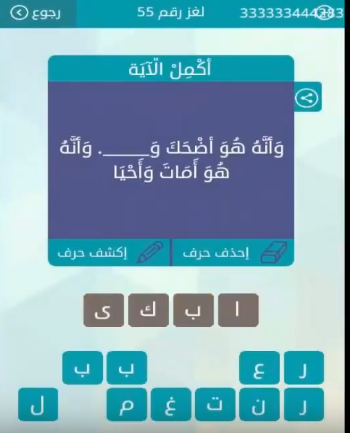 اجابة لغز وانه هو اضحك و وانه هو امات واحيا من لعبة وصلة المجموعة السابعة لغز رقم 55 صقور الإبدآع