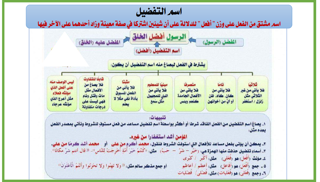 حل درس اسم التفضيل في مادة اللغة العربية للصف الحادي عشرالفصل الثاني مدرستي الاماراتية