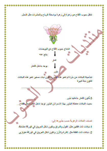 بالصور وملف تلخيص ورقة عمل النباتات المغطاة البذور الزهرية للصف الرابع الفصل الثاني منتديات صقر الجنوب